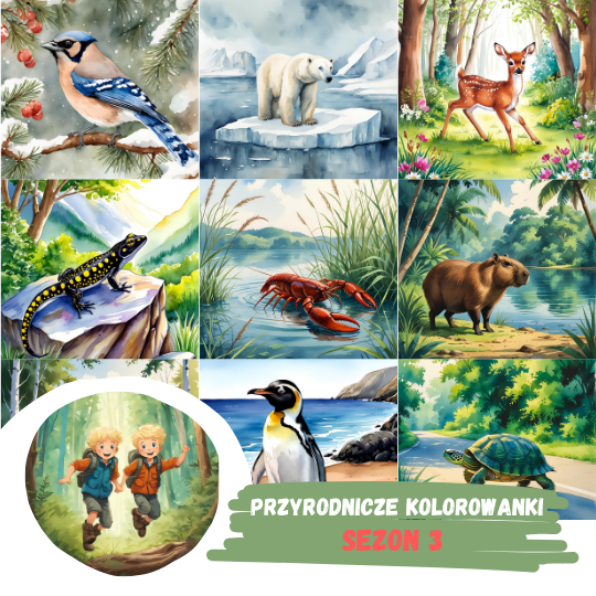 Przyrodnicze kolorowanki to seria dedykowanych kolorowanek inspirowanych podcastem "Julek i Filip w świecie przyrody" dostępnego bezpłatnie na wielu platformach streamingowych.